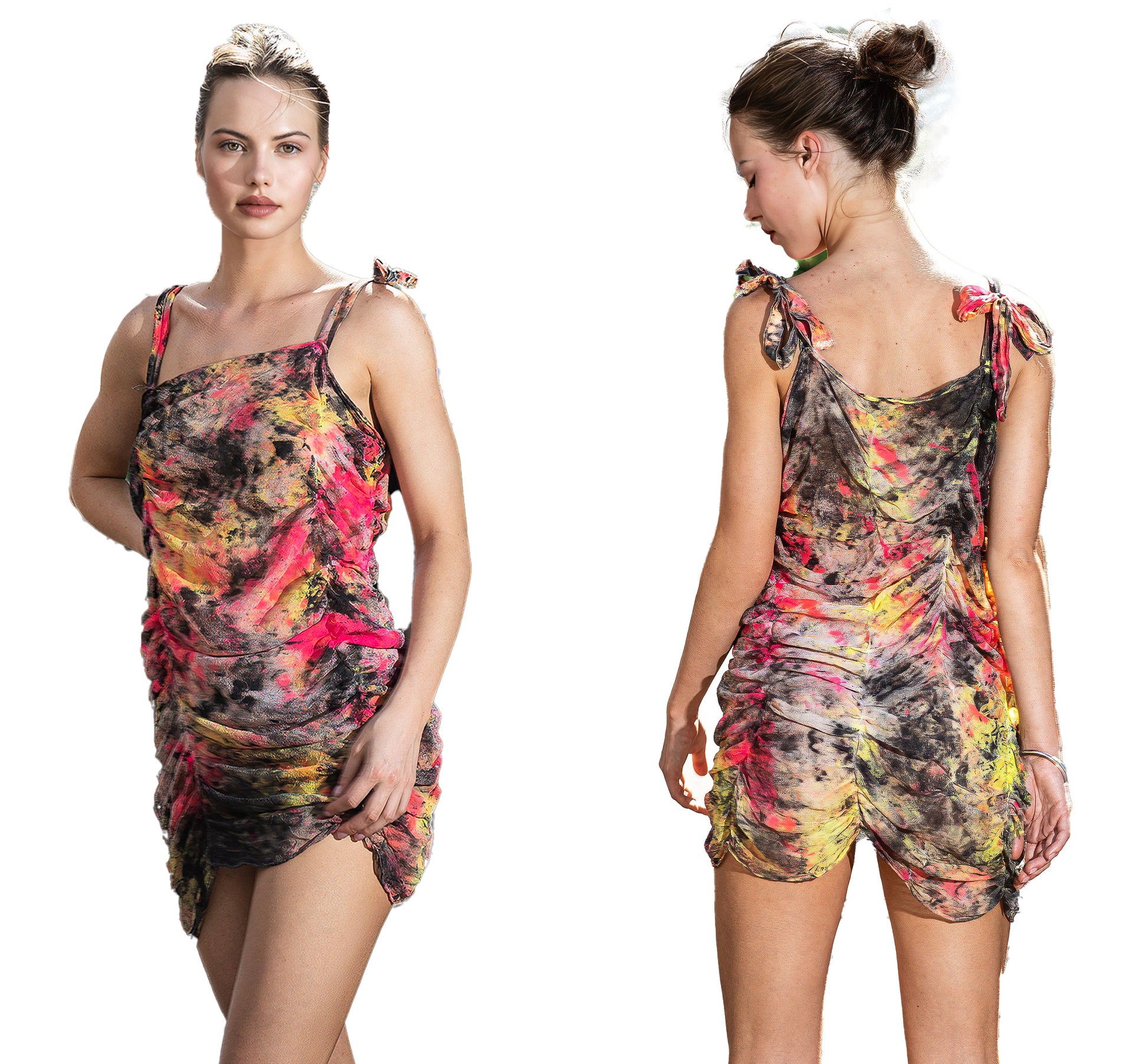 A bold, one-of-a-kind mini dress inspired by Miami sunsets and city heat. Hand-dyed and painted for a raw, artistic...